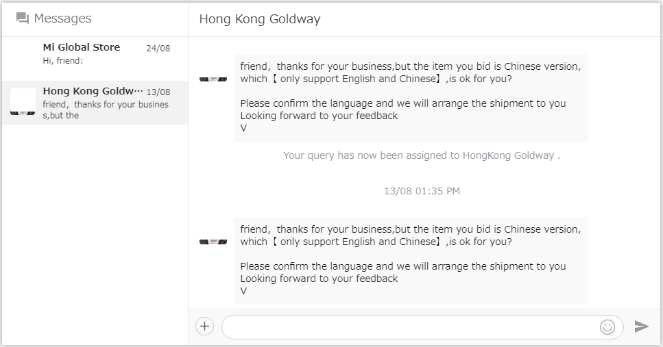 「間違いなければ連絡してアル。連絡後に発送するアルヨ!」